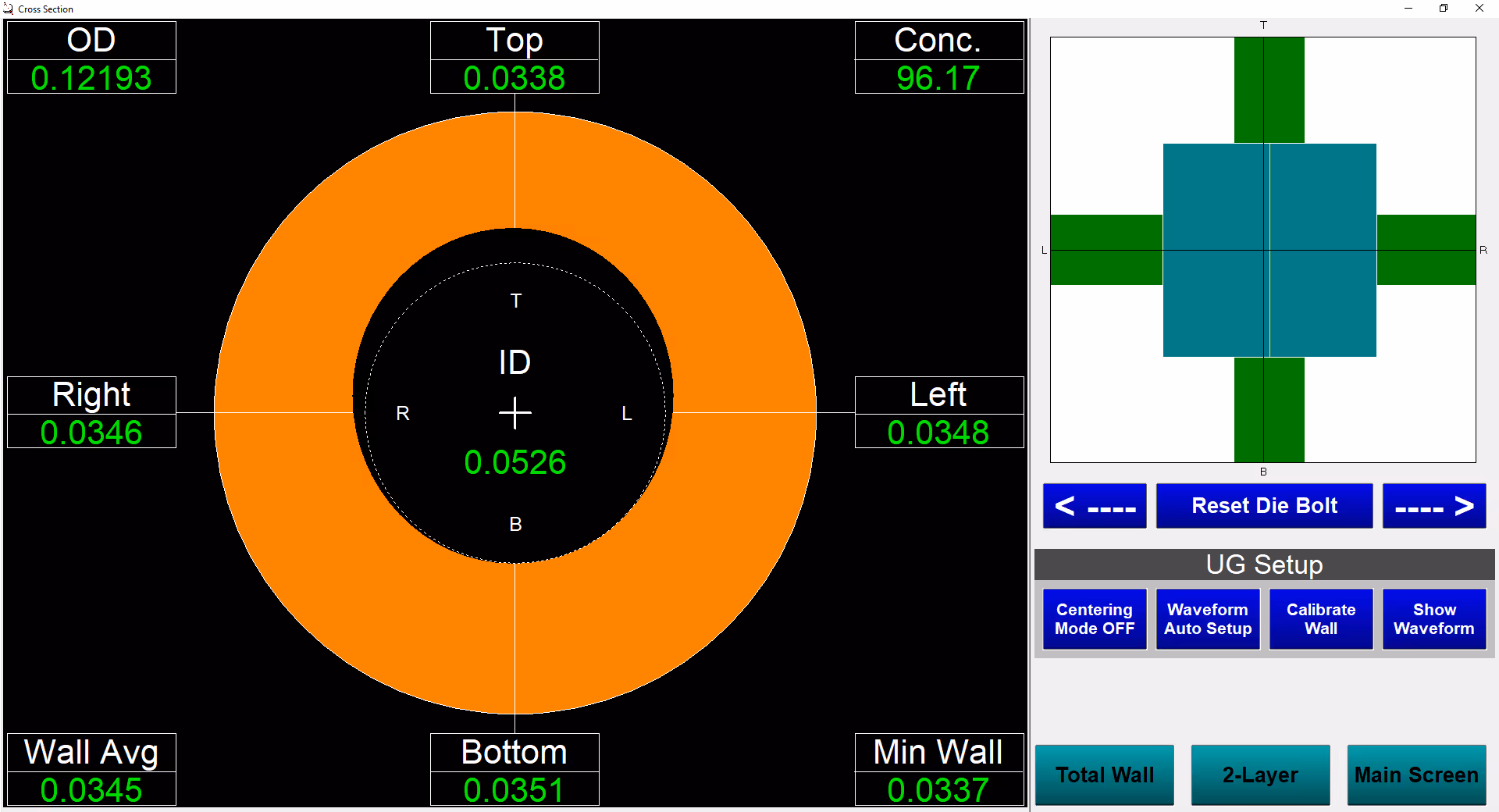 The Total Vu™ HMI is the core of most LaserLinc systems, and you'll see many screenshots throughout our site. Our HMI brings together any combination of our Triton™ and Axion™ laser micrometers, UltraGauge™ wall thickness and concentricity measurement devices, and FlawSense™ defect detection and advanced measurement products.