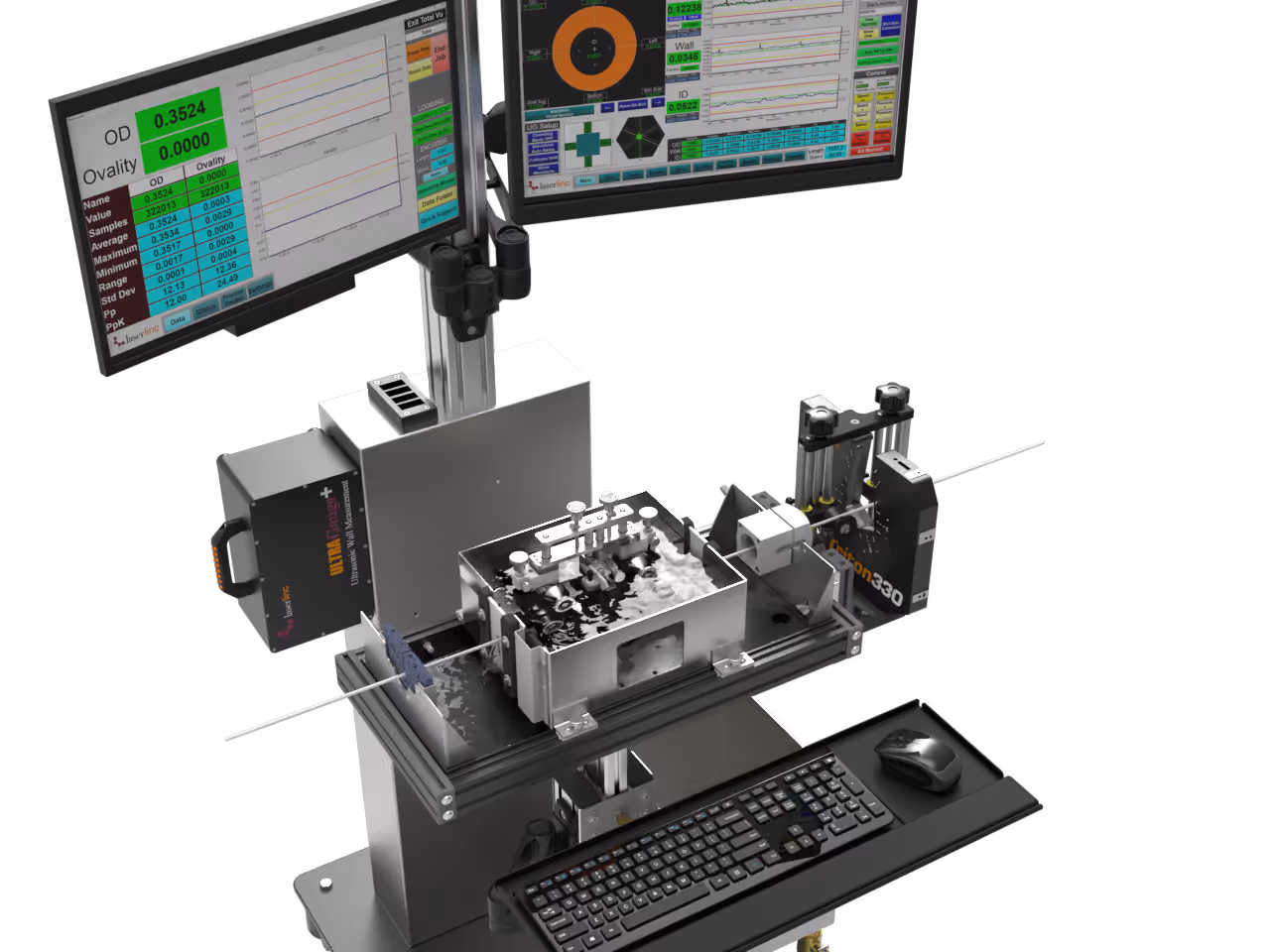 Continual wall thickness and concentricity updates also help operators maintain quality throughout the run. For full visibility of the cross-section profile – outside diameter, ovality, wall thickness, concentricity, and inside diameter – add a Triton™ series laser micrometer. After startup, continual ultrasonic measurement helps operators improve quality; closed-loop control does it automatically.